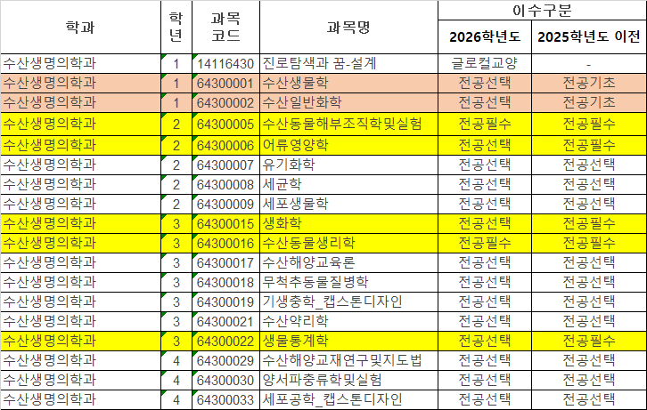 - 기존에 전공필수였던 교과목이 현재 전공선택으로 되어있어도 수강하면 졸업할때 전공필수 및 전공기초로 인정이 됩니다.