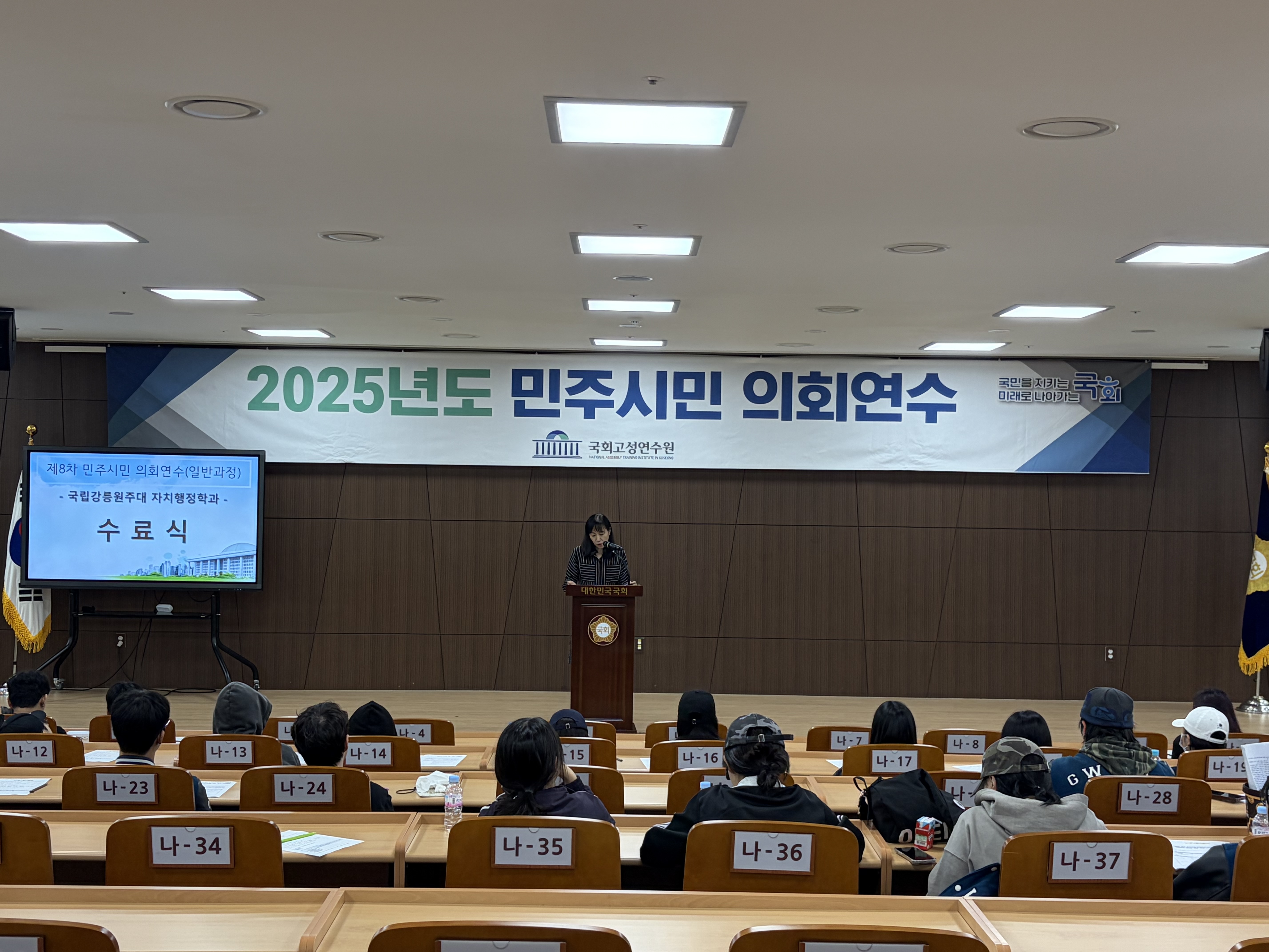- 국회연수원 활동 관련 수료식 및 수료증 배부