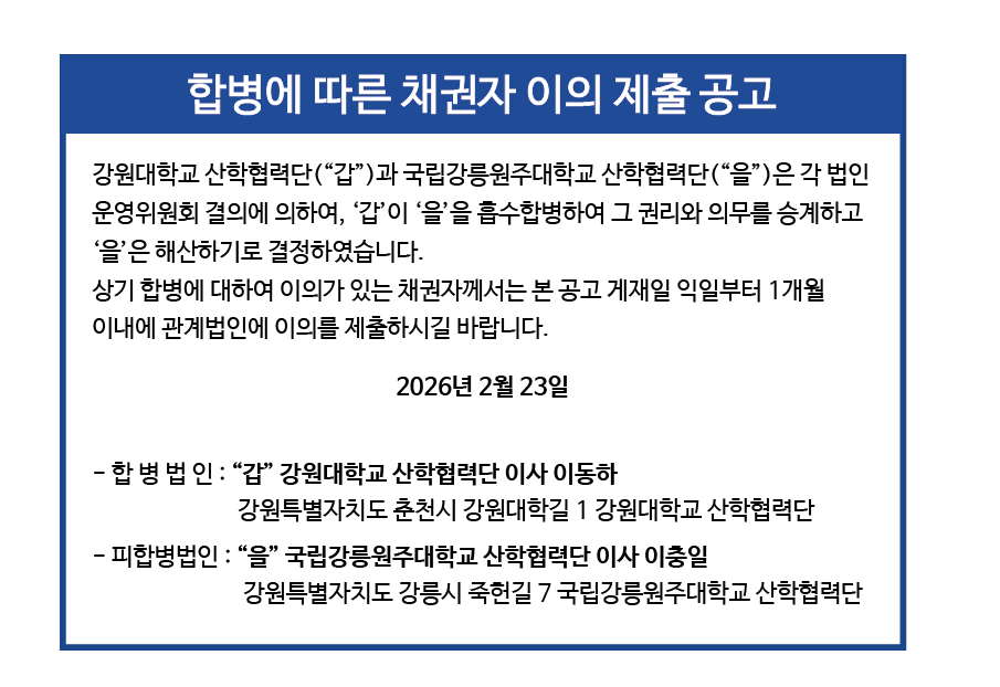국립강릉원주대학교 산학협력단 법인 합병에 따른 채권자 이의 제출 공고