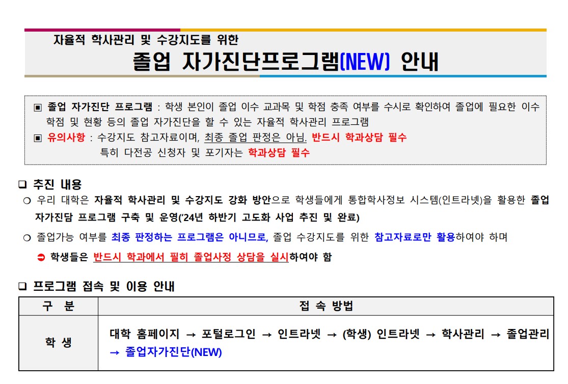 졸업 자가진단 (NEW) 프로그램 안내