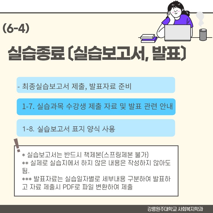 실습 기간 내에 필요한 서류들 잘 준비해서 빠짐없이 제출할 수 있길 바랍니다.