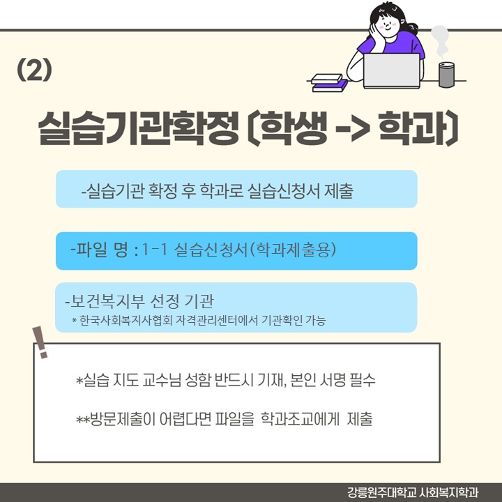 (기관에서 필요한 신청 서류들도 잘 알아보고 제출하시고 과사에서 보낼 서류 있으면 꼭 얘기해주세요!